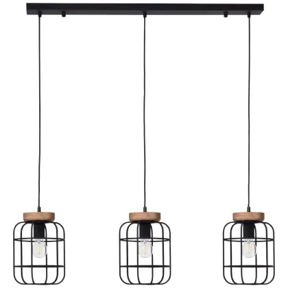 Beschreibung Brilliant Gwen Pendelleuchte Metall Holz Schwarz | Geeignet für 3x E27