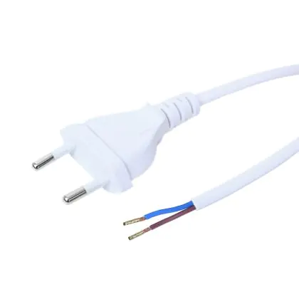 Euro Stromkabel Mit Eben Stecker 2x 0,75 2m Weiß