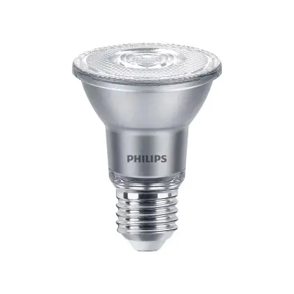 Der Philips Master Value LED Glühbirne Reflektor E27 PAR20 6W 500lm 40D - 927 Extra Warmweiß | Höchste Farbwiedergabe - Dimmbar - Ersatz für 50W ist ein leistungsstarker LED-Strahler mit E27-Sockel. Er kommt mit einer hohen Lebensdauer von 25000 Stunden daher und spart Ihnen somit nicht nur Energie-, sondern auch Austausch- und Wartungskosten. Im Preis ist zudem eine All-In-Garantie von 5 Jahre enthalten.